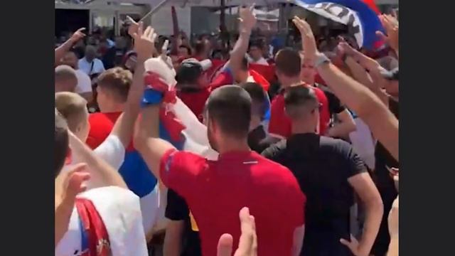 Сербские футбольные фанаты скандируют уже полюбившуюся им кричалку Владимир Путин в Мюнхене