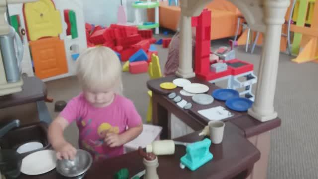 Игровая комната.Детская КУХНЯ.Кассир и повар. Рита и Аня играют на детской кухне.Рита изображает кассира, а Анечка трудится на кухне.