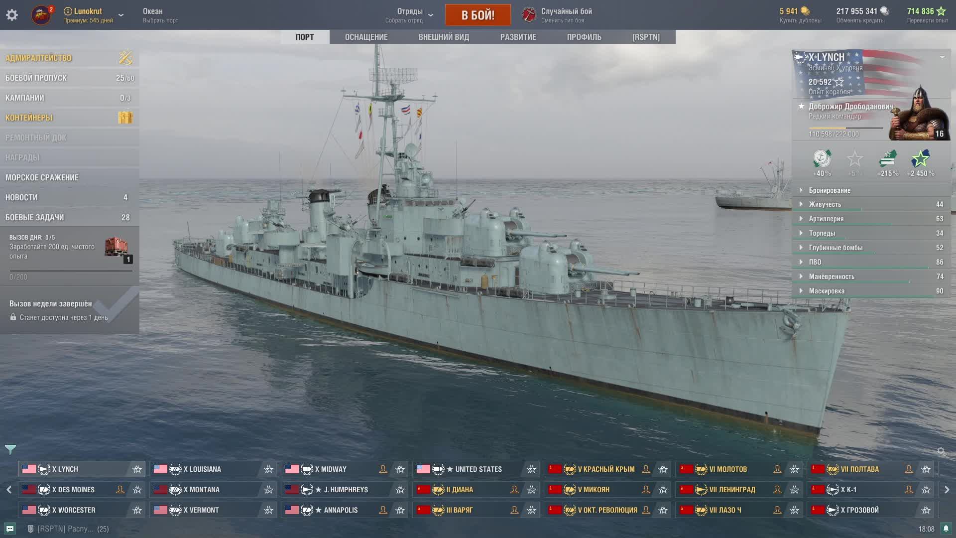 Мир кораблей - LYNCH Эсминец США 10 уровень) Альтернатива ветке Гиринг)