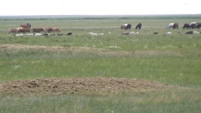 Лошади и овцы на выпасе