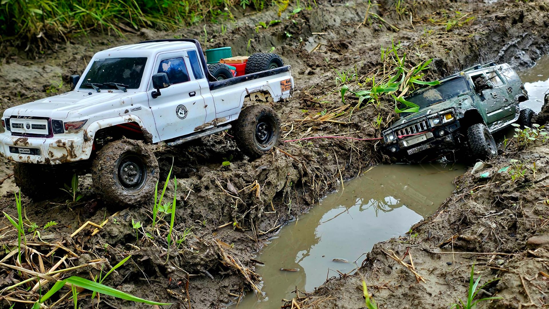 С трудом вытащили ЗАСТРЯВШИЙ HUMMER из грязи ... RC OFFroad 4x4