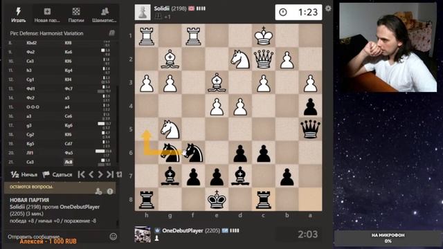 Друзья, всем привет. Партия со стрима, представляю вашему вниманию. Шахматы. Блиц 3+0 на chess.com. Если интересно, - подписывайтесь на канал, ставьте лайки, оставляйте комментарии. Поддержка через: DonationAlerts: https://www.donationalerts.com/r/onedebutplayer Бусти: https://boosty.to/onedebutplayer/donate Donatepay: https://new.donatepay.ru/@1272445