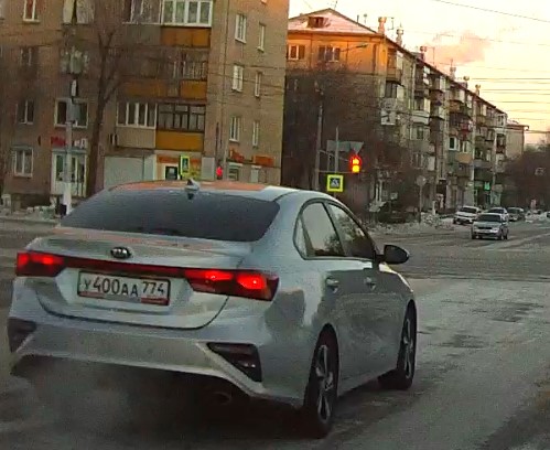 Выезд на перекрёсток на запрещающий движение сигнал светофора. Госномер нарушителя У400АА 774. Перекрёсток ул. Советской Армии и ул. Карла Маркса. 9-01-2022 п. 6.2. ПДД - жёлтый сигнал запрещает движение, красный сигнал запрещает движение, зелёный сигнал разрешает движение. п. 6.13 ПДД - при запрещающем сигнале светофора... водители должны остановиться перед стоп-линией (знаком 6.16).
