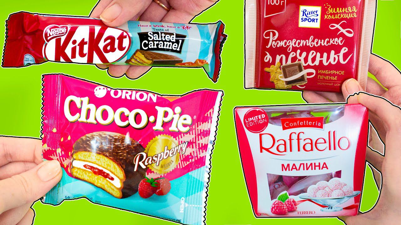 Новый ролик о новинках продуктовых полок: Малиновый Чокопай, Рафаэлло Малина, Рождественский Риттер Спорт и Кит Кат Соленая Карамель! Пробуем Малиновые Новинки Ноября 2019!