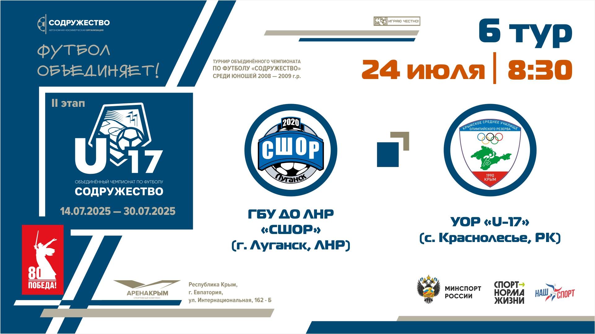 6 ТУР | U-17 | ГБУ ДО ЛНР «СШОР по футболу» (г. Луганск) - УОР «U-17» (с. Краснолесье, РК)