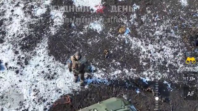 Российский дрон уговорил к сдачи украинских военных.