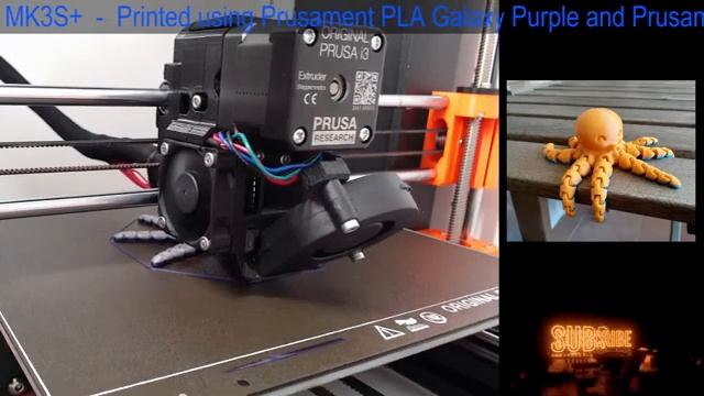 Thanks for Watching! This is a model called Cute Mini Octopus printed on a Prusa i3 MK3S+ - Printed using Prusament PLA Galaxy Purple and Prusament PLA Galaxy silver Please check out this model here: https://www.printables.com/model/178035-cute-mini-octopus Thanks for watching, please subscribe - more Live prints weekly