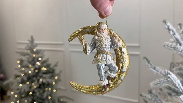 Ёлочная игрушка ДЕД МОРОЗ НА ЗОЛОТОМ МЕСЯЦЕ, полистоун, 10 см, E1036-1