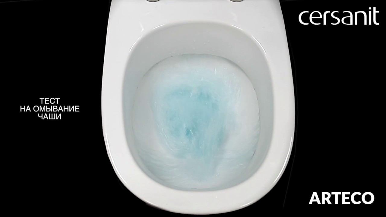 Друзья, представляем вам обновленное видео с тестами унитазов Cersanit. Мы ответили на ваши потребности и добавили тест на выплеск воды при смыве! На видео представлен тест смыва, омывания и выплеска унитаза Cersanit: модель ARTECO. Мы тщеательно относимся к качеству нашего продукта, тестируем каждую новую коллекцию перед запуском на рынок. Предлагаем и вам ознакомиться с проверочными тестами в коротком и наглядном видео. Средства контроля и вспомогательные материалы: – шар пластиковый массой (3,7±0,1) г. и Ø (20±0,1) мм. (плотностью 0,9 г/см3) – 50 шт.; – емкость для сбора тестовых образцов – 1 шт. – химическое средство для окрашенивания воды "Синька" - 20 мл. – стекло тонкое прозрачное - 1 шт. Напольный или подвесной унитаз устанавливают на прочной горизонтальной или вертикальной поверхности соответствующим образом, присоединяют смывной бачок со спускной арматурой и заполняют его водой объемом 6 л. Помещают в чашу унитаза 50 шаров и производят смывание. В ходе испытания после каждого из пяти испытаний с использованием 50 шаров минимум 85% из них должны быть смыты из чаши унитаза (среднее значение ≤ 7,5 не смытых шаров).