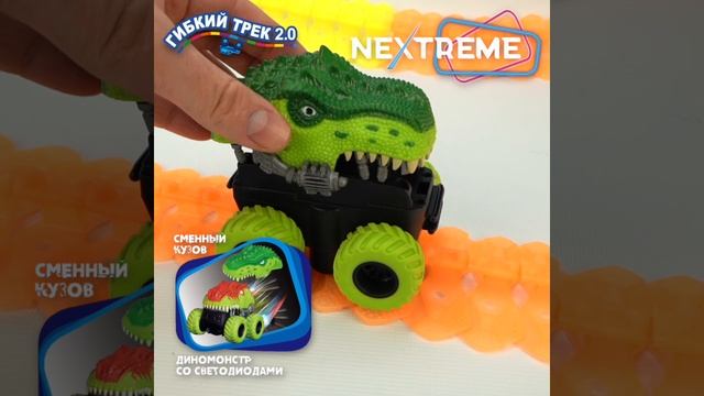 1TOY NEXTREME Гибкий трек Динопарк 150 дет., диномобиль, сменный кузов, 2 стойки, 1 крепеж к столу, в кор.37*28,5*8,5см