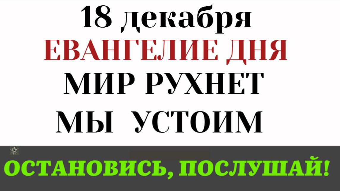 Евангелие дня 18 декабря (Четверг). Когда мир рушится, обычный человек впадает в панику и опускает руки. Но Христос дает Своим ученикам странный приказ: "Выпрямитесь и поднимите головы!" (Лк. 21:28). Почему христианам не должно быть страшно во время бедствий? Что означает загадочная притча о смоковнице и "лете"? И как понять великие слова: "Небо и земля прейдут, но слова Мои не прейдут"?Поблагодарить, поддержать: Сб. 2202 2061 0335 2154 (напишите имена в сообщение их помянут за богослужением, укажите, если инославные) Записки в храм https://ikoni.cerkov.ru/zapiski-v-xram/ #Евангелие #Утешение #Апокалипсис #СловаХриста #Лк21 #Толкование #Православие Где ещё можно смотреть выпуски: Рутюб https://rutube.ru/channel/1540928/ ВК https://vk.com/clubmirprav TELEGRAM https://t.me/Mirprav www.optina.ru (молитва оптинских старцев) #мирправославия Нажимая на "Мне нравится" и "Рассказать друзьям" - вы помогаете распространению Слова Божьего! евангелие, евангелие дне, евангелие дня, евангелие на сегодня, евангелие дня на сегодня, евангелие слушать, толкование евангелия, евангелие читать, читаем евангелие, глава евангелия, евангелие 2025,