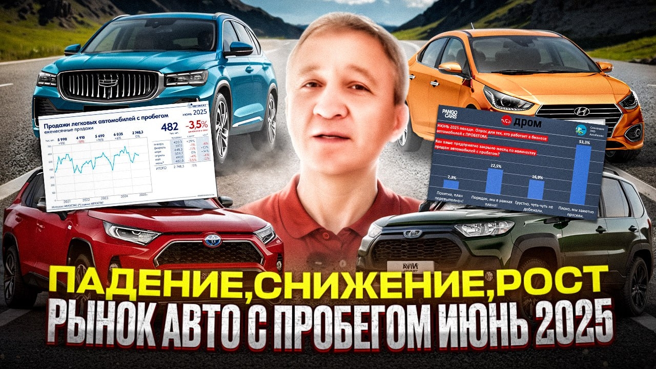 ПОДПИСЫВАЙТЕСЬ НА КАНАЛ. СТАВЬТЕ ЛАЙК. ЖМИТЕ РАКЕТКУ! Подробный разбор авторынка России за июнь 2025 года Как изменился рынок автомобилей с пробегом в июне? Почему падают продажи и снижаются цены? Какую уже долю заняли китайские авто? Лада доминирует в регионах, но почти не представлена в Москве? Свежие данные по перерегистрациям, импорту подержанных автомобилей, ценовым тенденциям и прогнозам на вторую половину года. В видео: • Анализ опросов среди автобизнеса; • Данные от Автостат, РОАД и других источников; • Тренды по популярным маркам и моделям; • Инсайды об импорте авто из Японии, Кореи и Китая; • Обсуждение возможного законодательного регулирования старых автомобилей; • Данные по автокредитованию и многое другое. 🔍 Если вы следите за состоянием российского авторынка, это видео — ваш must-watch! Полезные ссылки: ТГ-Канал про автобизнес: https://t.me/protradein ТГ-Чаты про автобизнес: https://t.me/protradeinchat При подготовке выпуска были использованы материалы: «Автостат» (https://t.me/autostatis), материалы канала Сергея Целикова (https://t.me/sergtselikov), материалы ресурса «Автостат Инфо» (https://avtostat-info.com/), исследования Авто.ру Бизнес (https://t.me/auto_ru_business), материалы и данные ресурса Frank RG (https://t.me/frank_rg), материалы маркетингового агентства НАПИ (https://napinfo.ru/), материалы ассоциации РОАД (https://asroad.org/), материалы журнала АвтоБизнесРевю (https://abreview.ru/), материалы информационных ресурсов и исследования канала «Самородов про Автобизнес» (https://t.me/protradein). Тайм-коды: 00:00 Вступление 00:18 Опросы о бизнесе авто с пробегом по итогам мая и июня 01:20 О рынке транспортных средств всех видов в июне 2025 03:28 Данные о рынке легковых авто с пробегом, марки и модели 05:41 Какие модели авто предпочитают в разных регионах 06:14 График продаж авто с пробегом за 5 лет 06:32 Какую долю рынка забрали китайские подержанные авто 07:15 О законодательной инициативе РОАД 08:15 Об импорте автомобилей с пробегом в РФ в 2025 году 09:23 Какие модели популярны при поиске авто под заказ 10:05 Китай тормозит экспорт подержанных автомобилей 10:38 Опрос на чтобы вы потратили некую большую сумму денег 11:08 Расчет стоимости импортного автомобиля от РОАД 11:47 Данные Автостат о снижении цен на авто с пробегом 12:52 Данные Авито Авто о снижении цен на авто с пробегом 14:03 Сколько автокредитов выдано в июне 14:16 Выводы и прогноз