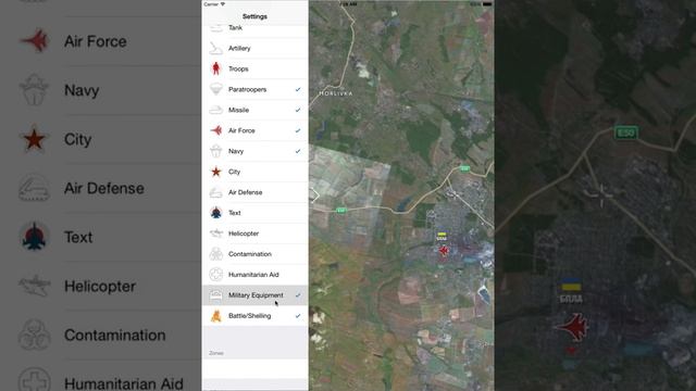 Небольшое видео разрабатываемого MilitaryMaps приложения для Apple iOS