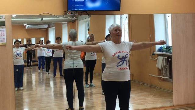 Фрагмент общеукрепляющей разминки перед занятием по гимнастике «Тайцзы юличо» для людей старшего поколения на площадке «Активное долголетие» МАУ «Физкультура и Здоровье» НГО, Находкинский филиал.Фрагмент общеукрепляющей разминки перед занятием по гимнастике «Тайцзы юличо» для людей старшего поколения на площадке «Активное долголетие» МАУ «Физкультура и Здоровье» НГО, Находкинский филиал.