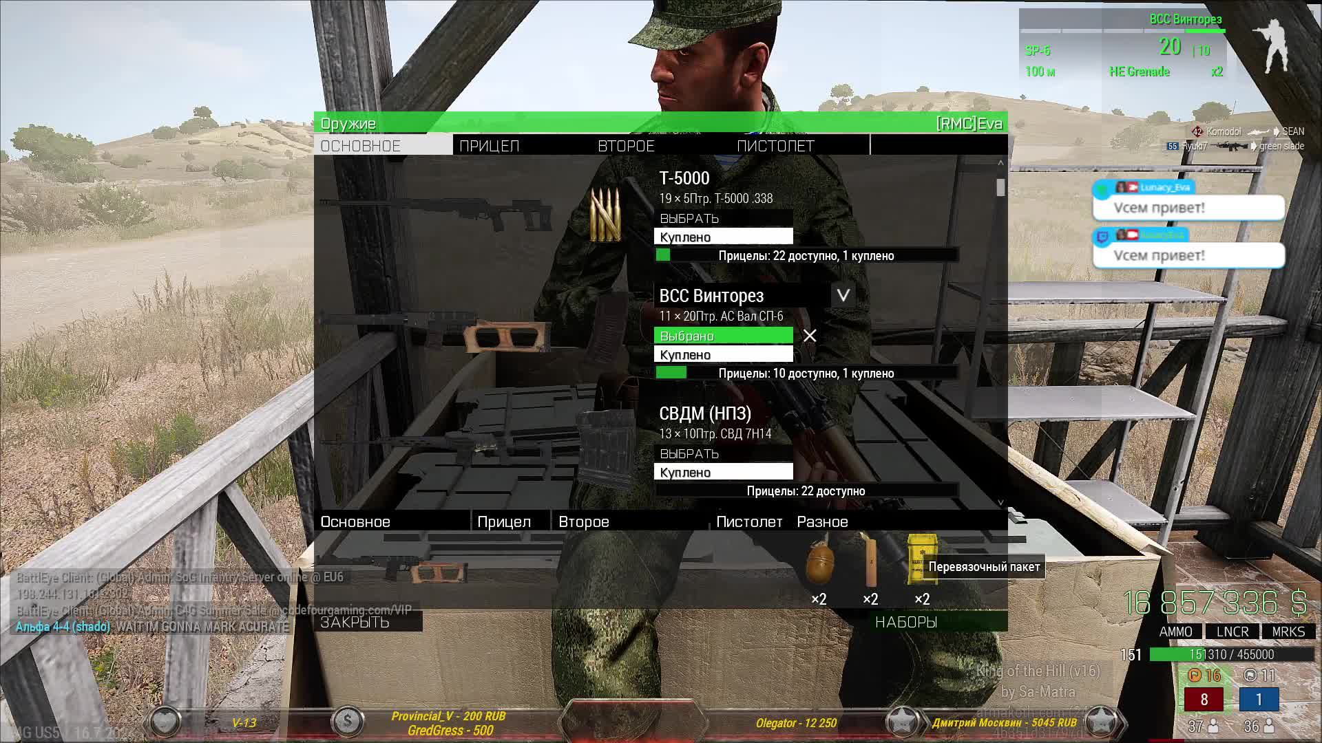 Мой дискорд https://discord.gg/gkzhHWMW7g #KOTH #ARMA3 #Eva #kingofthehill #kothrhs #arma3koth #CodeFourGaming #C4G #arma3 #арма3 #АРМА3 #модRHS #ARMA3RHS #lunacyeva #Eva Я на Goodgame https://goodgame.ru/channel/LunacyEva Я на Youtube https://www.youtube.com/@LunacyEva/ Я на Trovo https://trovo.live/Lunacy_Eva Я на Twitch https://www.twitch.tv/lunacyeva Для комплиментиков =)) ! С озвучкой на стриме: https://donatepay.ru/don/Eva http://www.donationalerts.ru/r/lunacyeva Или в тихушку - карта Сбербанка: 2202 2062 0178 2799 В чате стрима приветствуется: - Шутки, песни, анекдоты; - Советы и жалобы=) ; - Капсить можно, но учтите бот не зачитывает капс! В чате не приветствуется: - Ругаться матом; - Прямо и косвенно оскорблять других пользователей в чате; - Заниматься пропагандой расовой и национальной дискриминации; - Тут не место для политики. Моя железяка: https://youtu.be/uheJmrrnXE0 Проц.: Intel Core i7-7700K 4200 МГц; Видео: GeForce GTX1080; Мат.плата: ASUS ROG STRIX Z270F GAMING; Память: DDR4 32Гб KINGSTON HyperX FURY; 2 SSD: 256 Гб Samsung 850 Pro, 1ТБ Samsung 870 QVO; Жест.диск: 2000 Гб 7200 rpm WDC; Охлаждение: Corsair Hydro H100i; Корпус: Zalman Z9 Neo Black; Гарнитура: HyperX Cloud II; Клавиатура: A4Tech G800 3X Fast Gaming; Мышь: Logitech G102; Мониторы: Samsung S19B370B 18.5 и C32JG51FDI 31.5 Support the stream: https://streamlabs.com/lunacyeva1