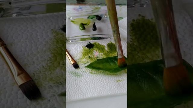 Тонировка листьев розы. Холодный фарфор.