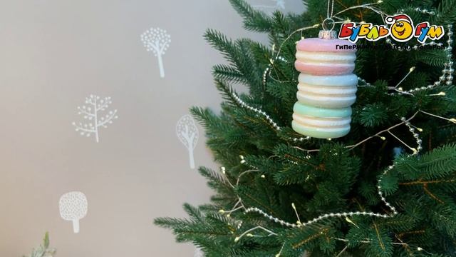 330996 Елочное украшение Макарон нежное и разноцветное 8см