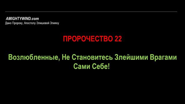 Пророчество 22. Возлюбленные, Не Становитесь Злейшими Врагами Сами Себе!
