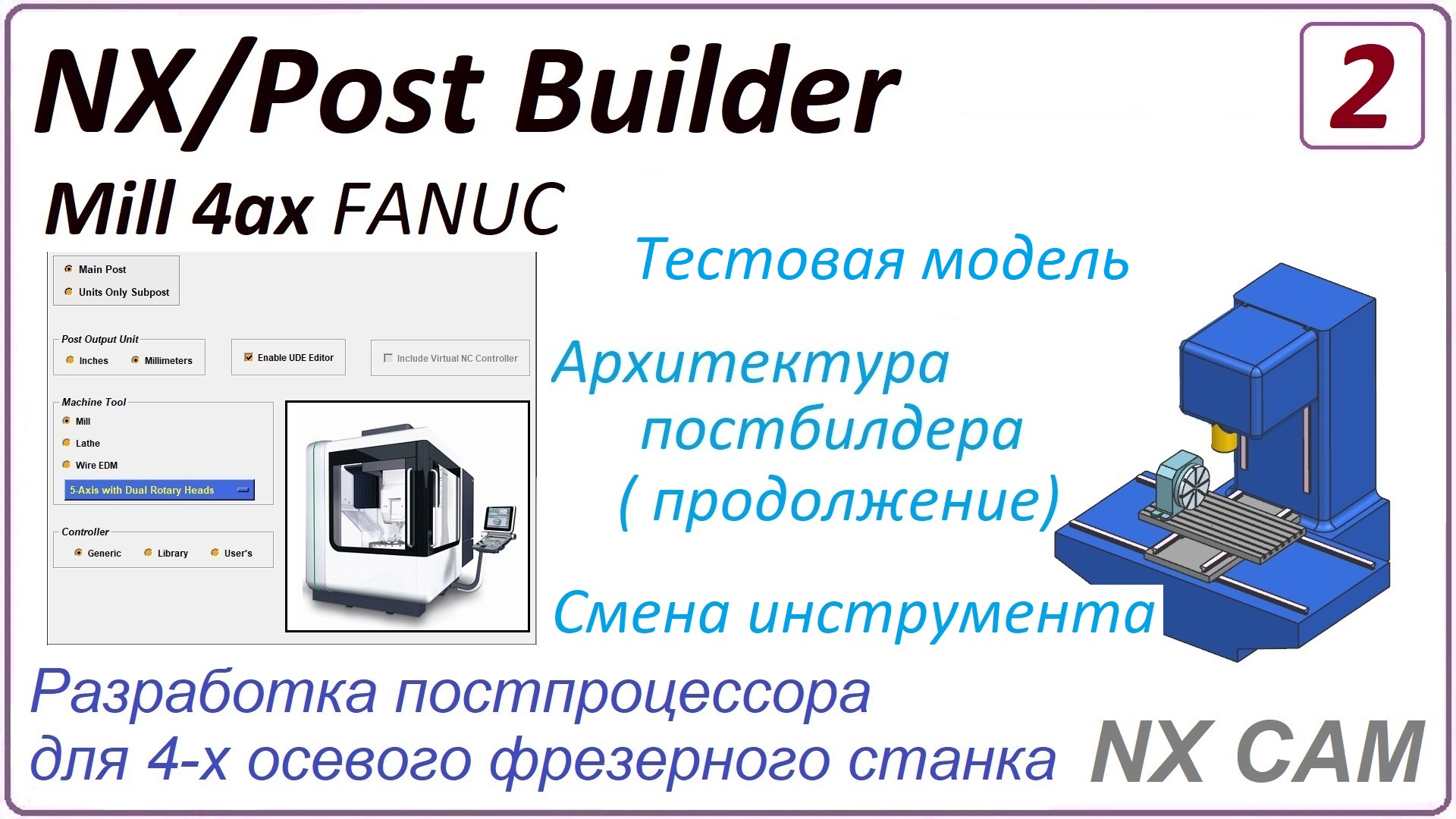 NX CAM. Разработка постпроцессора для 4 х осевого фрезерного станка. Урок 2.