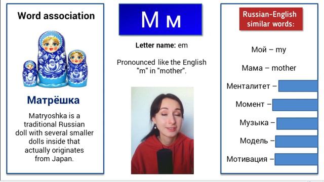 Learn Russian letters that are almost the same as in English. Russian lessons with fun and easy exercises that will hack your brain to read in Russian instantly. There are many of you who asked me to create a more detailed video on Russian alphabet. Even though there are already lots of videos that teach Russian alphabet, I noticed that they are not really teaching you to read in Russian - not only to learn how each Russian letter is pronounced separately but to understand how they can be pronounced in words taking into account that they can have different sounds depending on their position in a word. In these lessons, you will also discover Russian-English similar words and cognated that will help you get used to Cyrillic letters. The next lesson 'Russian letters that look like English but sound differently' - https://www.youtube.com/watch?v=DPd1pP1jKIE&t=1516s Here is my very first video on Russian alphabet if you want to learn about about these word associations that I give for each Russian letter - https://www.youtube.com/watch?v=iypPRj1P7fc&t=909s Free video lessons for complete Russian beginners - https://www.hackyourrussian.com/free-russian-beginner-lessons My new Russian Pronunciation Course - https://www.hackyourrussian.com/russian-pronunciation-course Get 14 days FREE of my Russian Pronunciation Course on Skillshare - https://www.skillshare.com/r/profile/Lyudmila-Kovaleva/686451145 Russian Handwriting Course - https://www.hackyourrussian.com/russian-handwriting-cursive Get 14 days FREE of my Russian Handwriting Course on Skillshare - https://skl.sh/301d51y Learn 800 Russian - English similar words and cognates divided by topics - https://www.hackyourrussian.com/post/russian-english-similar-words-cognates My official website with more useful and free materials to learn Russian language - https://www.hackyourrussian.com/ Here are useful guides to learn Russian cases effectively and with a lot of fun (not a traditional way with boring grammar rules and exercises): The Most Comprehensive Guide to the Russian Genitive Case - https://www.amazon.com/dp/B096XH6BXN The Most Comprehensive Guide to the Russian Accusative Case - https://www.amazon.com/dp/B09CCCTBSN Download the ROADMAP to learn Russian language – https://hack-your-russian.ck.page/hack-your-russian-roadmap List of great resources to learn Russian language - https://www.hackyourrussian.com/russian-resources Join my Patreon club to get more exclusive materials to learn Russian language. I have recently created a Telegram group where we discuss video lessons, learn new words every day, discover interesting facts and practice speaking Russian. If you like my videos, you can thank me by buying me a cup of coffee - https://ko-fi.com/hack_your_russian. And I will have more energy to make more fun and interesting videos for you. Support this project to get more free interesting materials to learn Russian (even 1$ matters) - https://paypal.me/hackyourrussian?locale.x=en_US Stop wasting your time and money! Learn and practice Russian on the best Russian language platform - https://viarussian.com/free-trial-lesson-mila/ Free trial lesson, consultation with a coach + lots of great learning materials Get more exclusive materials to learn Russian language on my Patreon page https://www.patreon.com/hack_your_russian "Hack Your Russian" channel helps you learn Russian language for free with lots of great authentic materials: 📺 Russian movies; 📺 Russian TV-series; 📺 Russian TV-shows; 🎵 Russian songs; 🇷🇺 Russian culture and Russian stereotypes related materials; 🇷🇺 Russian history, and so much more... Our slogan is "Learning Russian language should not be boring and hard!" Subscribe to our channel and don't miss any new free Russian lessons. Don't forget to check our awesome Instagram account for more great and useful tips to learn Russian language: Russian vocabulary, Russian grammar and learning tasks. Learning Russian language has never been that easy and entertaining! Hack your Russian with Mila! WANT MORE USEFUL MATERIALS? 📚 MY SOCIAL NETWORKS: Instagram: https://www.instagram.com/hack_your_russian/ Patreon - https://www.patreon.com/hack_your_russian Facebook: https://www.facebook.com/Hack-Your-Russian-107415930992192/ Pinterest: https://www.pinterest.com/Hack_Your_Russian Thank you for watching! ❤❤❤ Subscribe for new weekly videos! #RussianAlphabet #CyrillicLetters #LearnRussianAlphabet #LearnRussianLetters #RussianforBeginners #BeginnerRussian #RussianLetters #RussianSounds #RussianCourse
