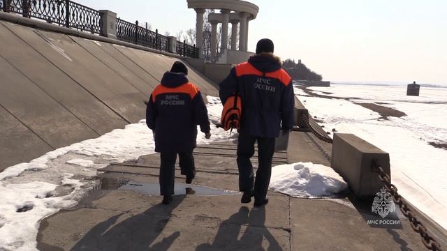 В южных районах края уже отмечаются положительные температуры, это значит, что лёд на водоемах стремительно меняет свою структуру. Угроза провала людей и техники на реках и озерах возрастает в разы. Чтобы предупредить несчастные случаи и напомнить гражданам об осторожности сотрудники Центра ГИМС Главного оправления МЧС России по Хабаровскому краю вместе с представителями органов местного самоуправления, спасателями, волонтерами выходят в патрулирования. Сегодня такой совместный рейд с комитетом по управлению Кировским районом администрации г.Хабаровска прошел на центральной набережной краевой столицы, пляжа Дальдизель.
