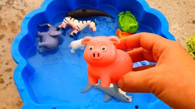 Изучите названия и звуки животных - осьминога, краба, акулы, слона, утки, лошади, акулы