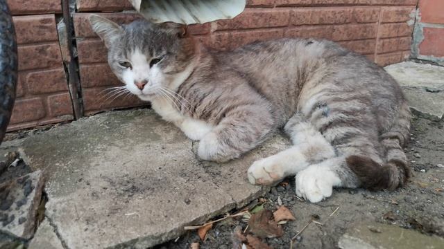 Жара, котяра валяется сонный под водостоком