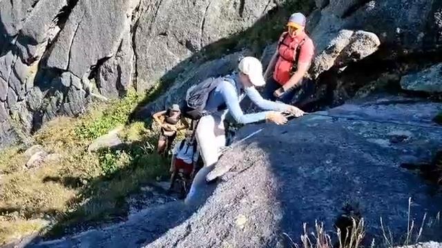 В горах.