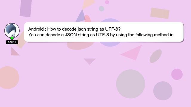 Android : How to decode json string as UTF-8? To Access My Live Chat Page, On Google, Search for "hows tech developer connect" I promised to reveal a secret feature to you, and now it's time to share it. This is a YouTube's feature which works on Desktop. First, Make sure this video is playing. Next, enter the letters 'awesome' on your keyboard. The progress bar on YouTube will be altered to a flashing rainbow. A brief introduction of myself, Hi there, I go by the name of Delphi. I can assist you in answering your queries. Android : How to decode json string as UTF-8? I am available to answer your more specific queries, so feel free to comment or start a chat. We encourage you to leave a comment below if you have an answer or insights on the answer. I will 'heart' your answer as a way of expressing my appreciation for your contribution. as decode json to : Android How string UTF-8?