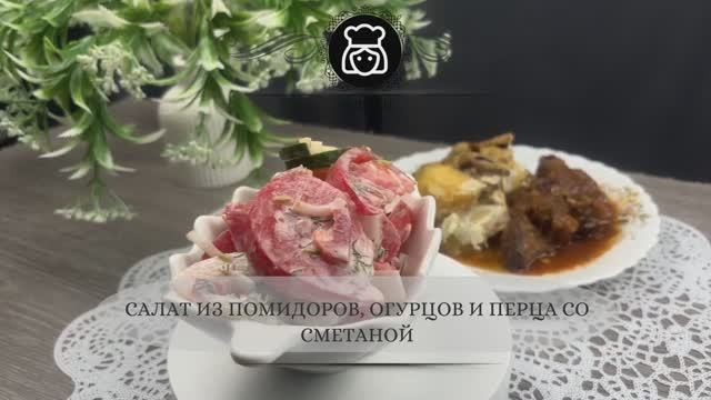 Салат из помидоров, огурцов и перца со сметаной
