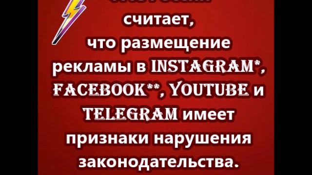 ФАС России считает, что размещение рекламы в Instagram*, Facebook**, Youtube и Telegram имеет признаки нарушения законодательства.
