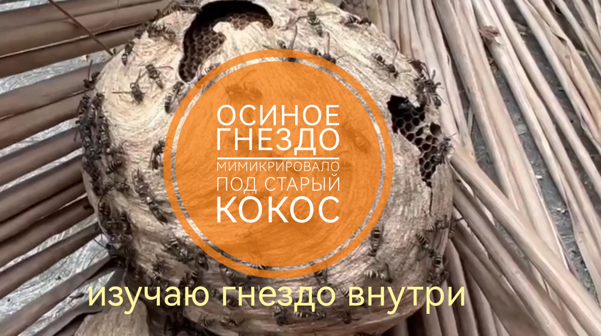 Мексиканские медоносные осы. Осиное гнездо мимикрировало под старый кокос. Изучаю гнездо внутри