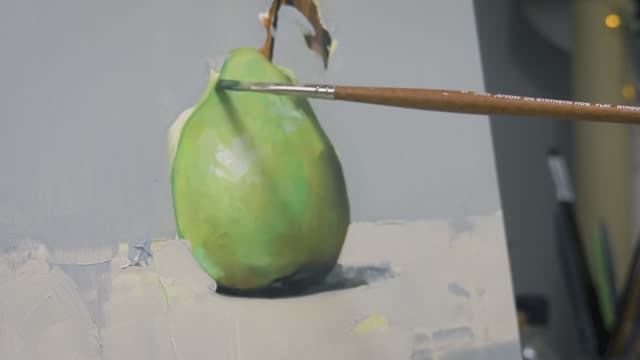 Масляная живопись. Натюрморт с грушей. Повтор работы 10 летней давности.