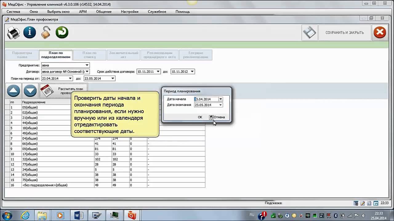 Настройка Плана профосмотра по подразделениям