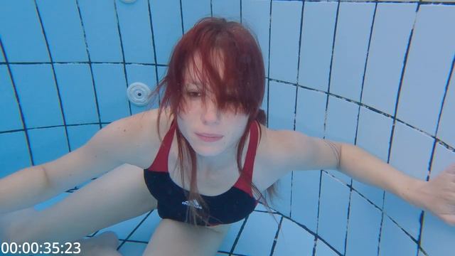 Девушка на дне бассейна.