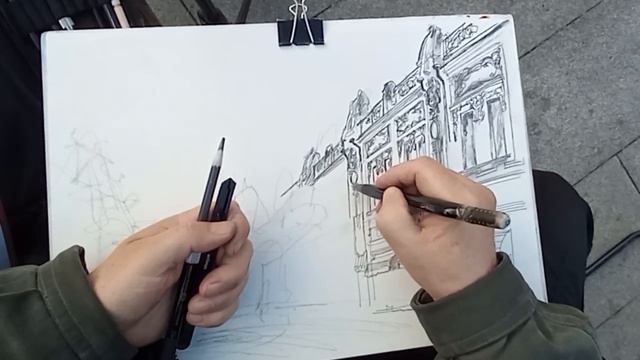 23.05.2023(1) Городская зарисовка карандашом Реальное рисование с разговорами и пояснениями (+21)