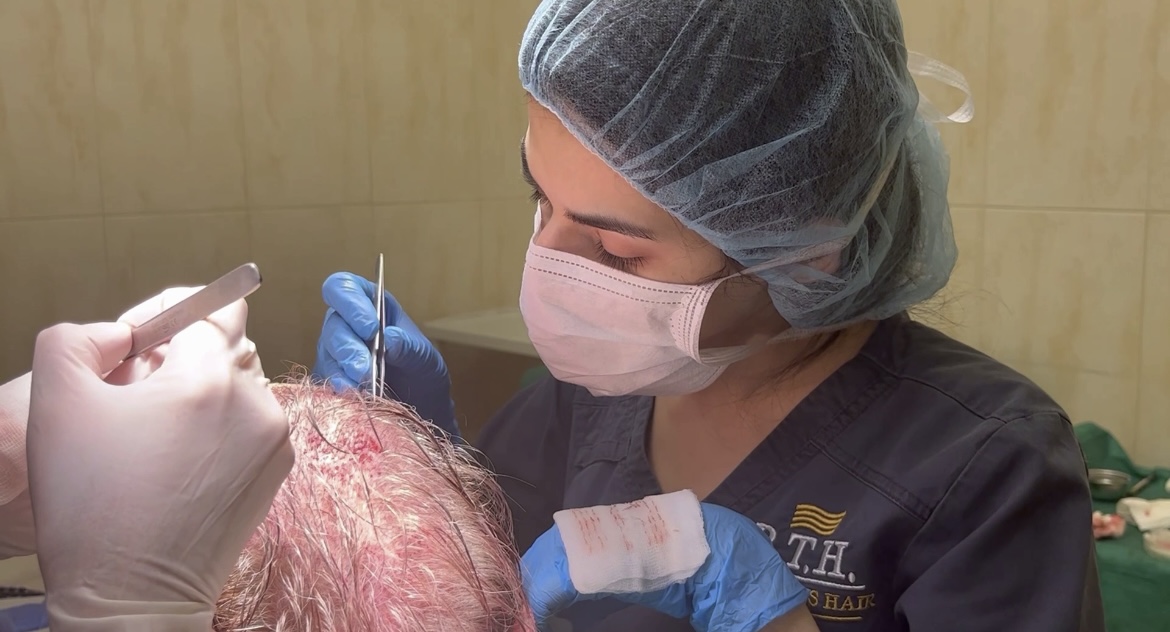 2000 графтов: коррекция передней линии и уплотнение лобно-височных залысин и макушки.