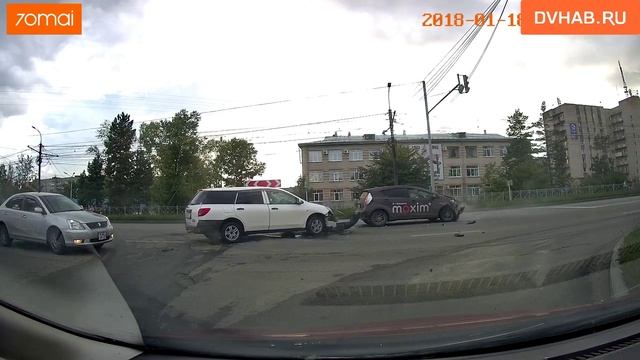 Примерно в 9:30 утра на перекрестке ул. Тихоокеанской и Бондаря Nissan, выезжая с второстепенной дороги, не уступил путь Toyota-такси. Произошло столкновение.