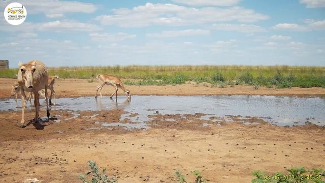 Начало лета порадовало обитателей заповедника «Черные земли» дождями и относительно прохладной погодой. Благодаря этому весь июнь растительный покров степи оставался зеленым, что не совсем характерно для региона. Водопои были не так востребованы, однако совсем без воды животные обходиться не могут. Сайгаки, лисы, степные орла, грифы, огари – вот неполный список тех, кто отметился у водопоя в эти дни. Событием недели стал выход в свет нового выводка волчат в количестве восьми щенков!