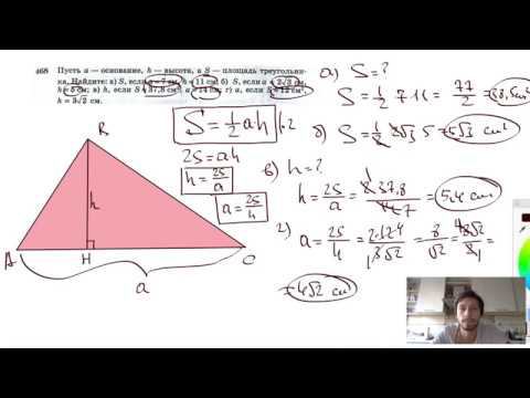 №468. Пусть а — основание, h — высота, a S — площадь треугольника. Найдите: Поддержать канал рублём - 5469400944002125 (Сбербанк) Мой второй канал для подготовки к ЕГЭ и ОГЭ - https://www.youtube.com/ЕвгенийСумин Инстаграм - https://www.instagram.com/EGE_OGE.math Личный инстаграм - https://www.instagram.com/ee_sumin VK - https://vk.com/evgeniysumin FB - https://www.facebook.com/EvgeniySumin
