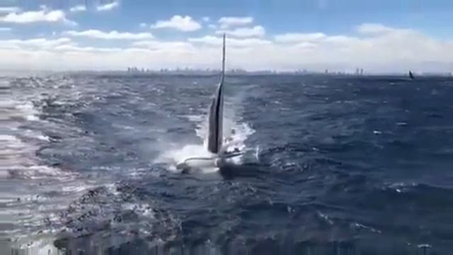 глиссирующий катамаран съёмка с вертолета