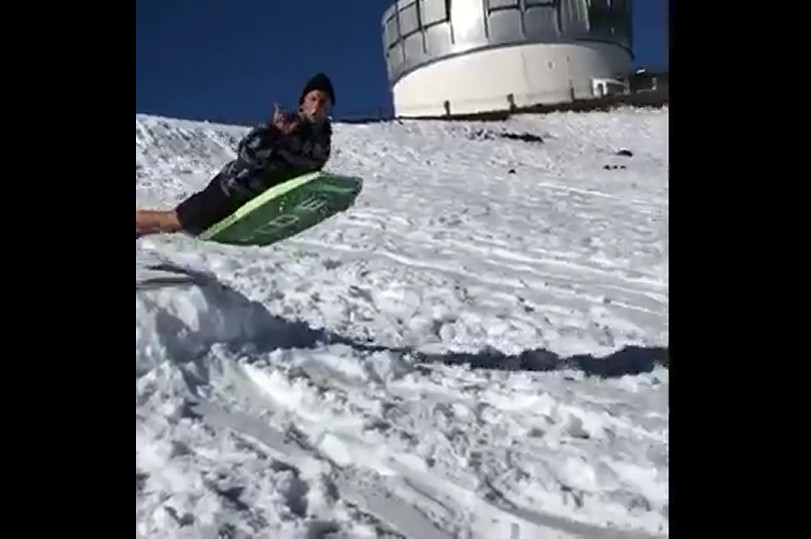 Парень во время спуска на санках с горки, лицом угодил в снег. #прикол #фейл #неудача #санки
