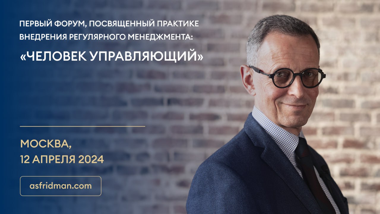 Коллеги, приглашаю вас на первый форум, посвященный практике внедрения регулярного менеджмента: «Человек управляющий», Москва, 12 апреля. Ознакомиться с программой и стоимостью можно по ссылке: https://fridman.com.ru/forum