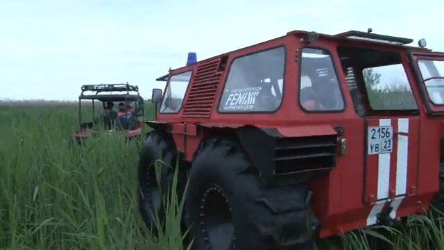 В очередных учениях использовались 2 современных вездехода. Отработка ликвидации очага возгорания прошла на территории плавневой зоны Анапы.