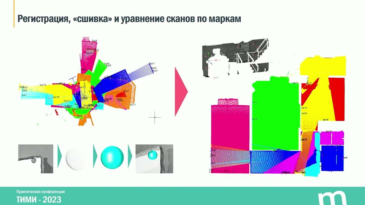 Сараев Константин Игоревич (Нанософт). Тема доклада: "Обработка данных 3D-сканирования в цифровой модульной платформе ReClouds". 24 мая состоялась Практическая конференция «ТИМИ-2023. Технологии информационного моделирования и инжиниринга», организованная АО «СиСофт Девелопмент» совместно с генеральным партнером «Нанософт». *Разработка продукта для 3D-сканирования* Несколько лет назад при поддержке Министерства промышленности и торговли мы приступили к разработке продукта для обработки данных при сканировании. Лазерное сканирование широко используется в различных отраслях промышленности для решения таких задач, как реконструкция, проверка на столкновение, обратный инжиниринг и моделирование окружающей среды. *Особенности рекламной платформы* ReClouds – это не просто вертикальное приложение, а сама платформа. Она обеспечивает базовую облачную поддержку наряду с ручными операциями, такими как выбор зоны и сегментация. Основная функциональность включает в себя стандартные методы предварительной обработки, а также регистрацию облака точек, фильтрацию, классификацию и моделирование. *Регистрация и классификация* ReClouds предлагает автоматические алгоритмы регистрации облака точек для точного выравнивания данных, а также обладает возможностями классификации объектов на основе геометрических атрибутов, таких как распознавание формы или отображение текстур. *Сравнение облаков и моделей* Облачные модели можно сравнить с любой загруженной моделью независимо от ее типа. Сравнение основано на математической корреляции и пороговом значении, установленном пользователем. Цель состоит в том, чтобы представить пользователю логически отсортированную коллизию. *Создание векторизованных разделов* Векторизация позволяет воссоздавать точные векторные модели из сложных участков облака. Этот процесс включает в себя анализ геометрии с использованием специализированных алгоритмов, которые эффективно обрабатывают несвязанные точки. *Надежное измерение геометрии* Приложение обеспечивает надежное измерение геометрии за счет точной обработки и анализа данных. Это позволяет создавать точные геометрические модели для систем информационного проектирования. *Конкретные области применения технологии* ReClouds – платформа, которая разрабатывает специализированные приложения, такие как мониторинг опасных промышленных объектов или проверка качества строительных элементов, например, балок и сварных швов. Эти приложения созданы в сотрудничестве с нашими партнерами и в настоящее время используются в различных отраслях промышленности. Официальный сайт Model Studio CS: https://www.modelstudiocs.ru/