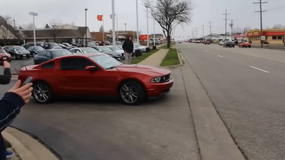 Водитель хотел покрасоваться на своем Мустанге, но не справился с управление и врезался в другую машину. #авто #мустанг #авария #понты