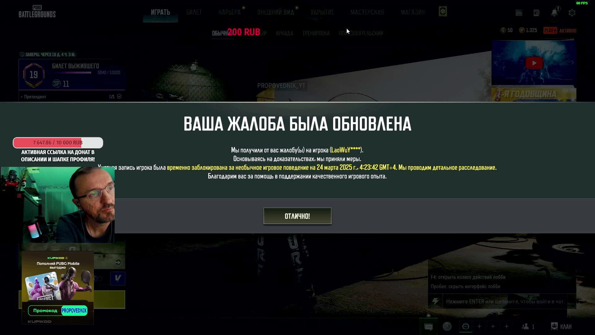 Пополнить Steam и купить игры не доступные в РФ можно на КупиКод: https://bit.ly/3DwcM5T Промокод: PROPOVEDNIK скидка всем! ДОНАТ: https://www.donationalerts.com/r/propovednik_pubg Бесплатная доставка на первый заказ "Яндекс Еда":https://plms.adj.st?adj_t=vae3zcs_eqrhmx1&adj_adgroup=11903208&adj_campaign=11903208&adj_fallback=https%3A%2F%2Feda.yandex.ru%2F%3Futm_source%3Dyandex_distribution%26utm_campaign%3D11903208&adj_redirect_macos=https%3A%2F%2Feda.yandex.ru%2F%3Futm_source%3Dyandex_distribution%26utm_campaign%3D11903208