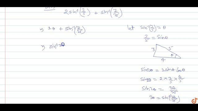 To ask Unlimited Maths doubts download Doubtnut from - https://goo.gl/9WZjCW Prove `2sin^(-1)(3/5)+sin^(-1)(7/25)=pi/2`