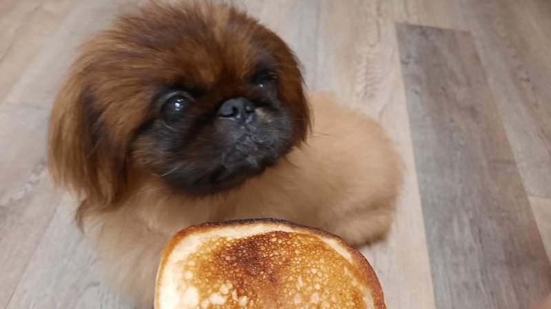 На ужин в блины со сметаной. Как же пекинес Дендик пропустит своё любимое блюдо )