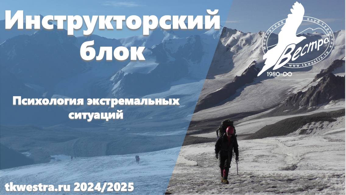 Лекция в рамках инструкторского блока турклуба Вестра. Сезон 2024-2025. Тема лекции: Психология экстремальных ситуаций Лектор: Никоноров Алексей Геннадьевич Хочешь узнать о нас больше ? Сайт https://tkwestra.ru/ Наше сообщество в VK https://vk.com/tkwestra Новости о клубе в https://t.me/tkwestra